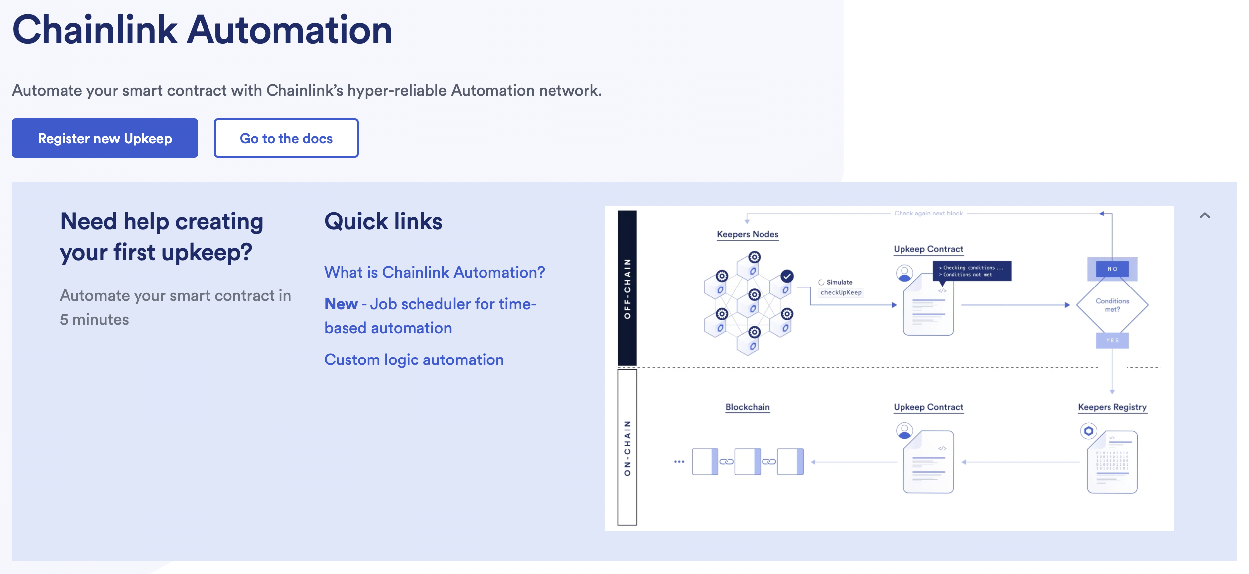 • Starting balance (LINK): Specify a LINK starting balance to fund your upkeep. See the LINK Token Contracts page to find the correct contract address and access faucets for testnet LINK. This field is required. You must have LINK before you can use the Chainlink Automation service.